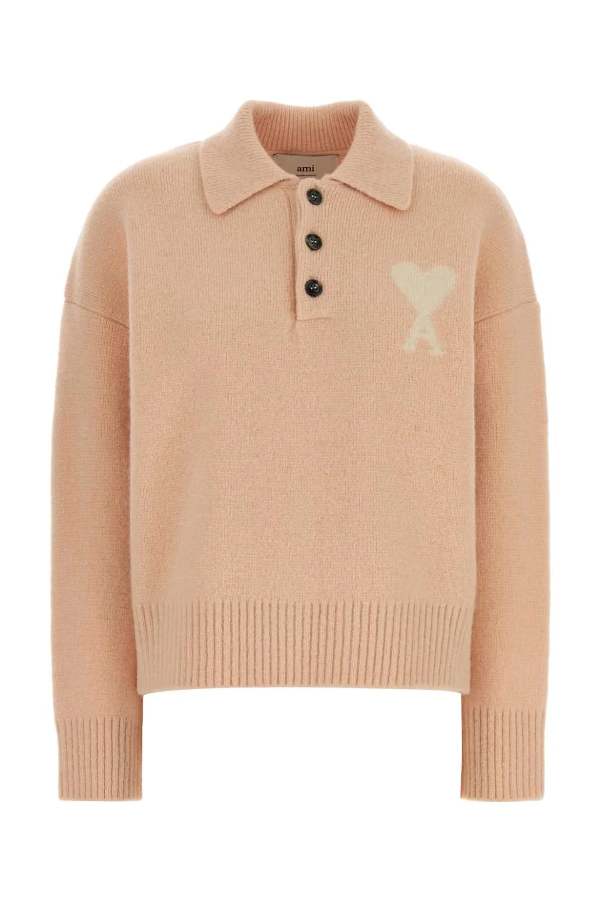 Ami Women Salmon Stretch Alpaca Blend Polo Shirt