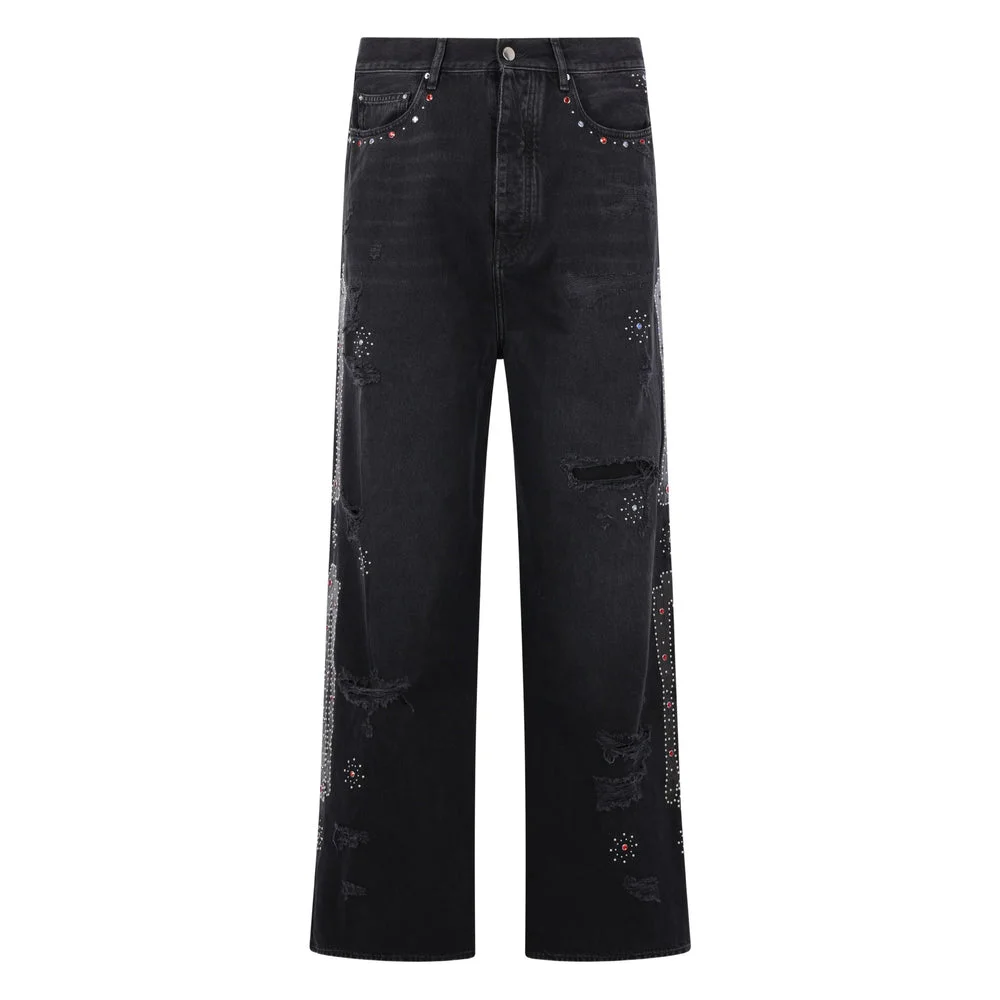 black ripped detailing stud embellishments five pockets belt loopsMADE IN:ItalyMATERIAL:Cotton: 100.0%COLOR:BLACK SKU: AMBMJE1011VINBK Our Products Are 100% Genuine. In All Cases We Stand By The Authenticity Of Every Product Sold On Our Site. All sales are final and we only accept returns for quality issue. Buyer is responsible for any import tax/duty if applicable.