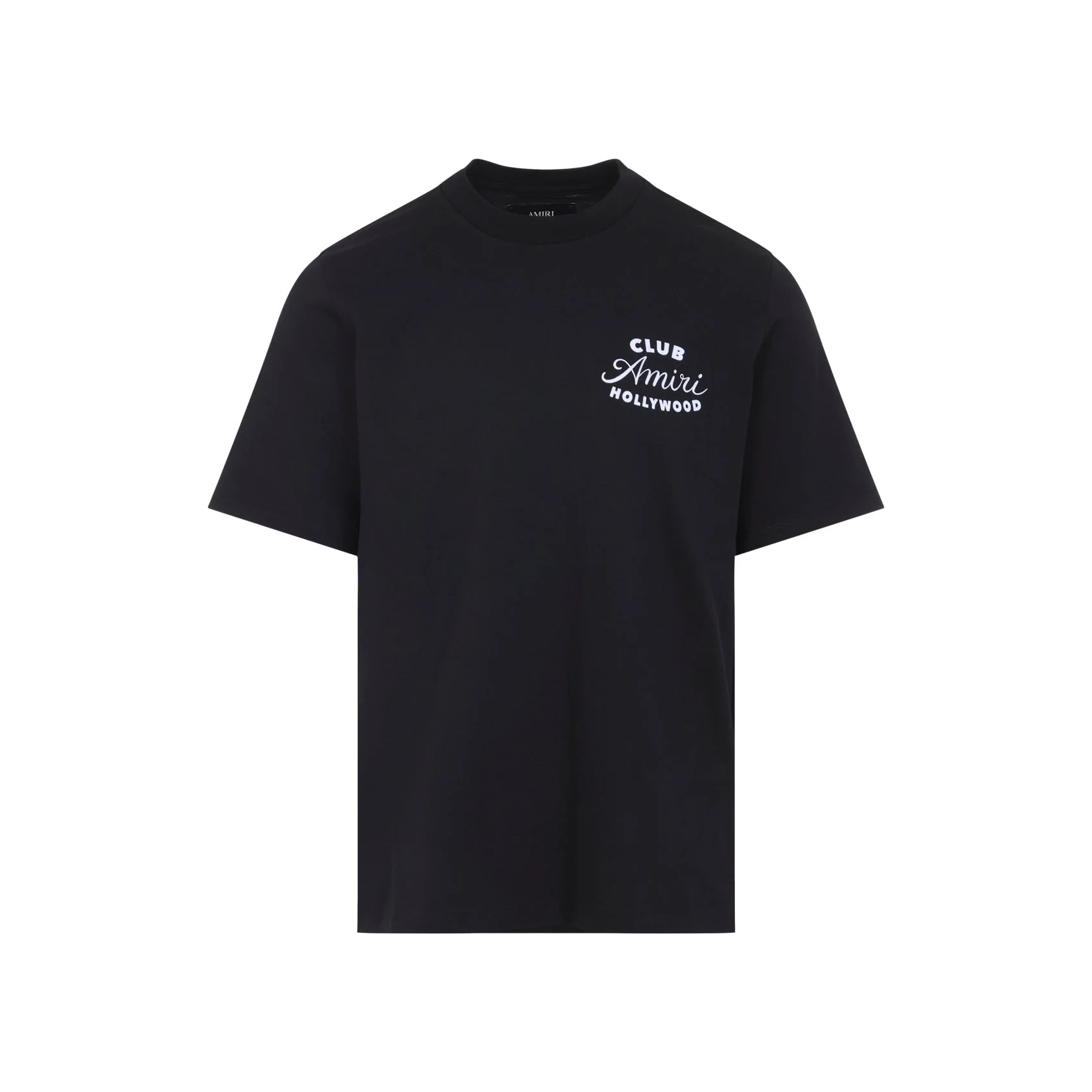 Amiri Club Black Cotton T-shirt. Crafted from black cotton jersey, round ribbed neckline, contrasting white "Club Amiri Hollywood" on the chest and back, dropped shoulders, short sleeves, straight hem. Cotton | 100%COTTON Size Type: INT SKU: AMJYTE1254Black Our Products Are 100% Genuine. In All Cases We Stand By The Authenticity Of Every Product Sold On Our Site. All sales are final and we only accept returns for quality issue. Buyer is responsible for any import tax/duty if applicable.