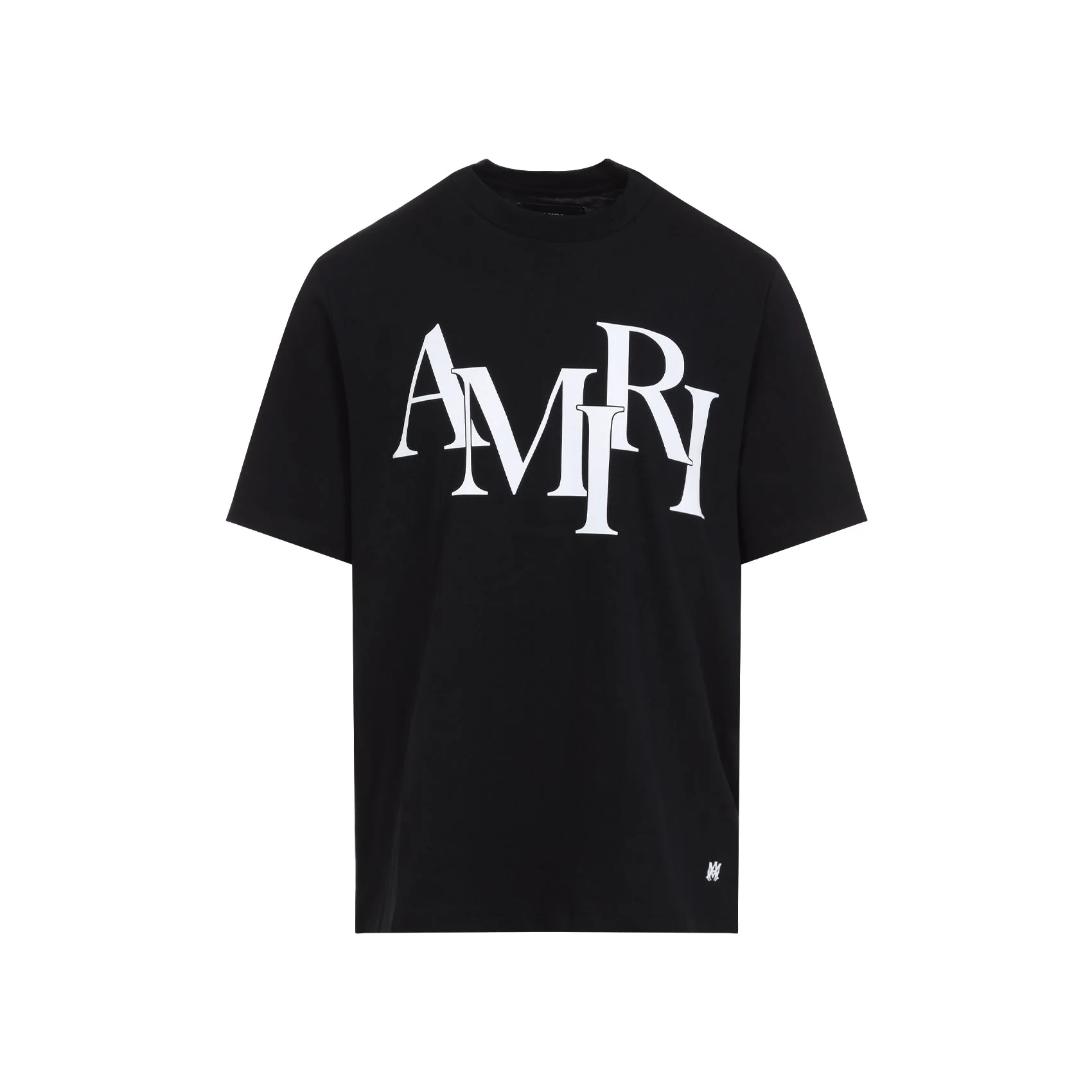 Amiri Black Cotton Staggered Logo T-Shirt. Black cotton, crew neckline, short sleeves, straight hem, logo lettering on front in contrasting white, regular fit. Cotton | 100%COTTON Size Type: INT SKU: AMJYTE1149Black Our Products Are 100% Genuine. In All Cases We Stand By The Authenticity Of Every Product Sold On Our Site. All sales are final and we only accept returns for quality issue. Buyer is responsible for any import tax/duty if applicable.
