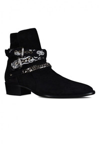 Amiri Bandana Buckle ankle boots in black suede. Buckled straps with bandana and silver details. Metallic chain. Pointed toe. Made in Italy. Size Type: IT SKU: Y0F20347SUBLACK Our Products Are 100% Genuine. In All Cases We Stand By The Authenticity Of Every Product Sold On Our Site. All sales are final and we only accept returns for quality issue. Buyer is responsible for any import tax/duty if applicable.