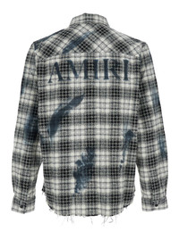 Amiri Men Grey Shirt With Check Pattern And Logo Lettering On The Back In Flannel Man