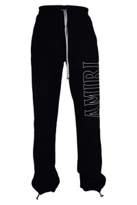 Black cotton Amiri jogging pants. Vertical logo print with white outlines on one leg. Elastic waistband with white drawstrings. Black logo patch on back. Side pockets. One back pocket. Elastic ankles with drawstrings. Made in Italy. Size Type: INT SKU: PS23MJL011001 Our Products Are 100% Genuine. In All Cases We Stand By The Authenticity Of Every Product Sold On Our Site. All sales are final and we only accept returns for quality issue. Buyer is responsible for any import tax/duty if applicable.