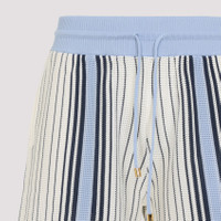 Amiri Ashley Blue Script Stripe Short. Crafted in viscose and polyester blend. Elastic waistband, front drawstring details, side pockets, side white embroidered Amari logo, ribbed straight hem, knitted design. White and ashley blue stripe pattern all-over. Viscose | 70%VISCOSE 30%POLYESTER Size Type: INT SKU: AMKNSH1048Blue Our Products Are 100% Genuine. In All Cases We Stand By The Authenticity Of Every Product Sold On Our Site. All sales are final and we only accept returns for quality issue. Buyer is responsible for any import tax/duty if applicable.