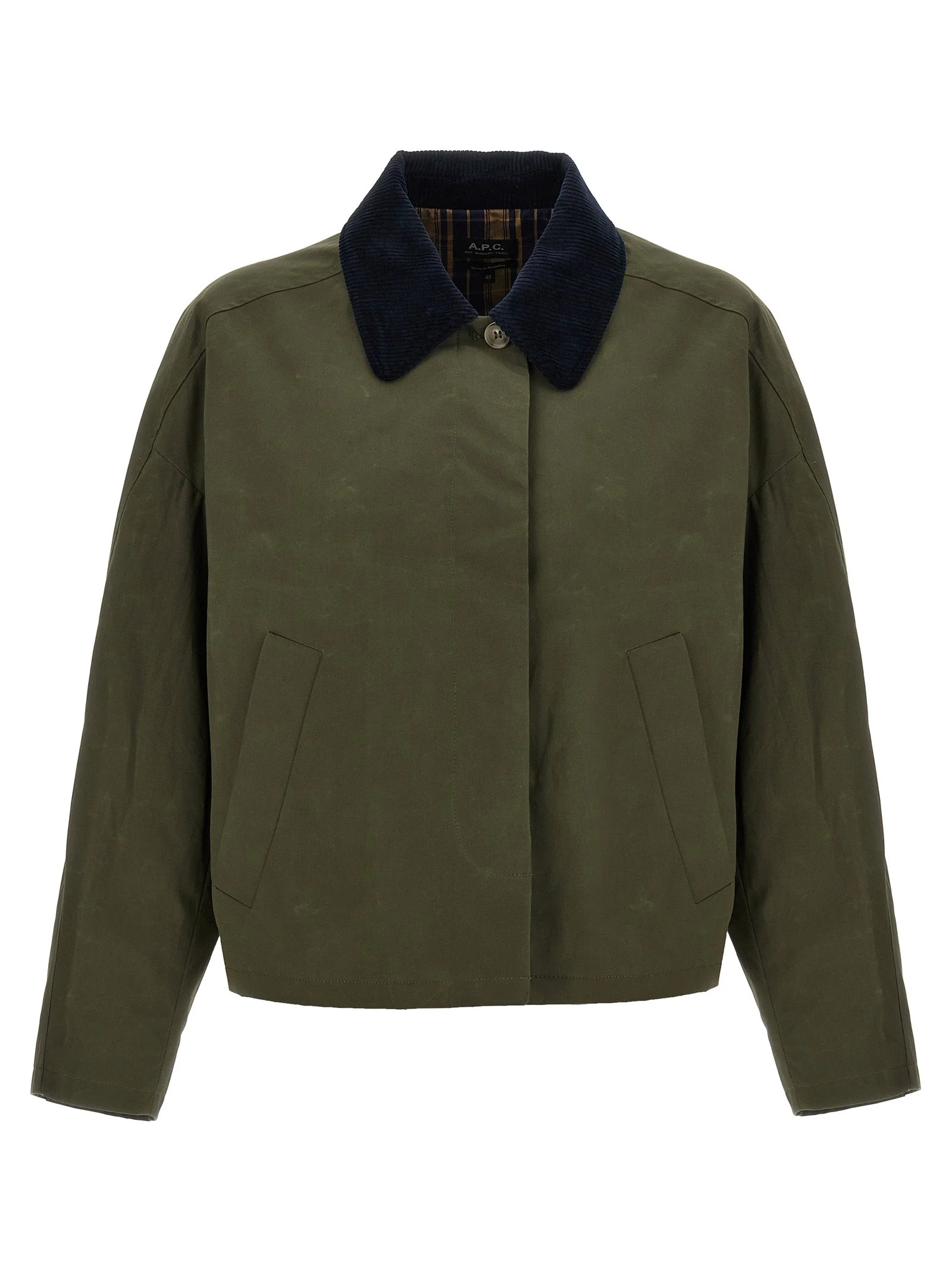 Short 'Becca' jacket in waterproof cotton canvas with traditional contrast collar in blue corduroy, check lining, front button closure, long sleeves with button. True to size fit 100% cotton SKU: COHILF02990JAC Our Products Are 100% Genuine. In All Cases We Stand By The Authenticity Of Every Product Sold On Our Site. All sales are final and we only accept returns for quality issue. Buyer is responsible for any import tax/duty if applicable.