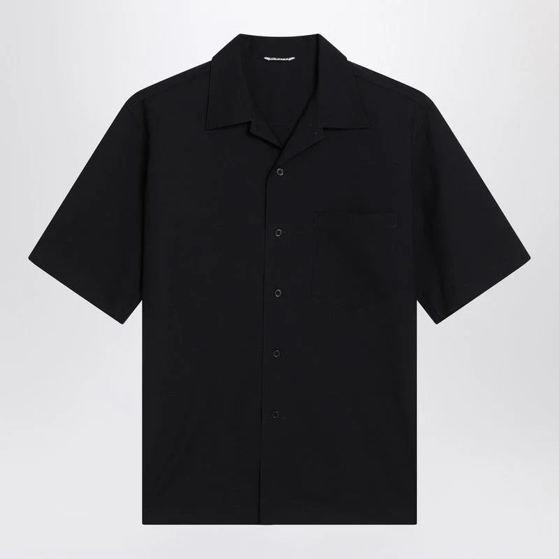 Auralee shirt in dark navy wool, characterized by front buttoning, short sleeves, bowling collar, a patch pocket on the chest, and side slits. Model wears size 4 Model measurements: Height: 187 cm Chest: 102 cm Waist: 76 cm Hips: 92 cm Size Type: INT Material: Wool SKU: A25SS02WTWO/QAURADN109 Our Products Are 100% Genuine. In All Cases We Stand By The Authenticity Of Every Product Sold On Our Site. All sales are final and we only accept returns for quality issue. Buyer is responsible for any import tax/duty if applicable.