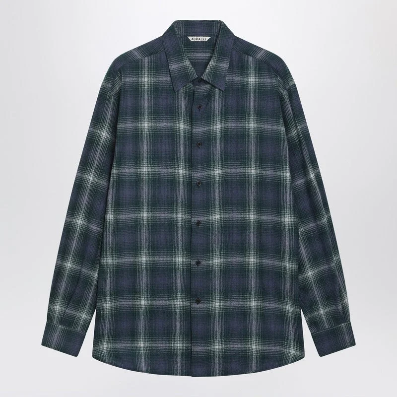 Auralee Green/Navy Checked Wool Shirt Men