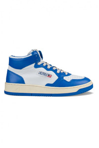 Autry Medalist Mid high-top sneakers in white and blue leather. Logo patch on outside. Tongue with logo patch. Yellowed and blue-effect rubber sole. Lace-up closure. Perforated round toe. 100% leather. Size Type: FR SKU: AUMMWB15 Our Products Are 100% Genuine. In All Cases We Stand By The Authenticity Of Every Product Sold On Our Site. All sales are final and we only accept returns for quality issue. Buyer is responsible for any import tax/duty if applicable.