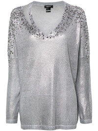 crystal-embellished V-neck jumper