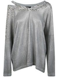 Avant Toi Women Linen Cotton V-Neck Pullover With Lamination And Strass