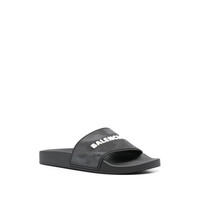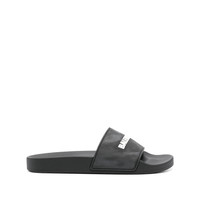 black/white logo-embossed strap open toe flat rubber sole MADE IN:ItalyMATERIAL:Lining Composition Polyamide: 100.0%, Outer Composition Rubber: 100.0%, Lining Composition Rubber: 100.0%, Sole Composition Rubber: 100.0%COLOR:BLACK SKU: 565547W1S801006 Our Products Are 100% Genuine. In All Cases We Stand By The Authenticity Of Every Product Sold On Our Site. All sales are final and we only accept returns for quality issue. Buyer is responsible for any import tax/duty if applicable.