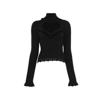 black ruffled trim heart cutout rib knit long sleeves high neck MADE IN:ItalyMATERIAL:Cotton: 76.0%, Polyamide: 23.0%, Elastane: 1.0%COLOR:BLACK SKU: 857209T34261000 Our Products Are 100% Genuine. In All Cases We Stand By The Authenticity Of Every Product Sold On Our Site. All sales are final and we only accept returns for quality issue. Buyer is responsible for any import tax/duty if applicable.