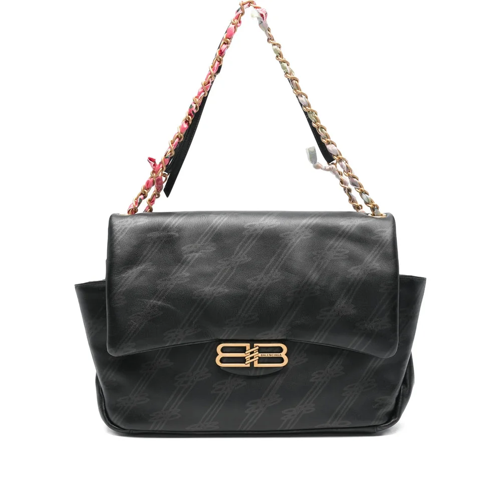 black logo monogram gold-tone logo-plaque foldover-top with magnetic fastening adjustable leather-chain shoulder straps two rear pockets partitioned compartment internal zip pocket This piece comes complete with a protective dust bag.MADE IN:ItalyMATERIAL:Outer Composition Calfskin: 100.0%COLOR:BLACK SKU: 8525012AB8W1000 Our Products Are 100% Genuine. In All Cases We Stand By The Authenticity Of Every Product Sold On Our Site. All sales are final and we only accept returns for quality issue. Buyer is responsible for any import tax/duty if applicable.