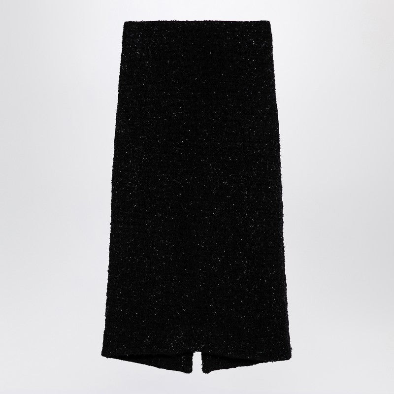 Black cotton blend tweed midi skirt from Balenciaga featuring shiny threads, a rear slit, a back zip fastening and an asymmetric hemline. Model wears size M Model measurements: Height: 179 cm Chest: 82 cm Waist: 65 cm Hips: 90 cm Size Type: INT Material: Cotton SKU: 793601T3328/PBALEN1000323 Our Products Are 100% Genuine. In All Cases We Stand By The Authenticity Of Every Product Sold On Our Site. All sales are final and we only accept returns for quality issue. Buyer is responsible for any import tax/duty if applicable.