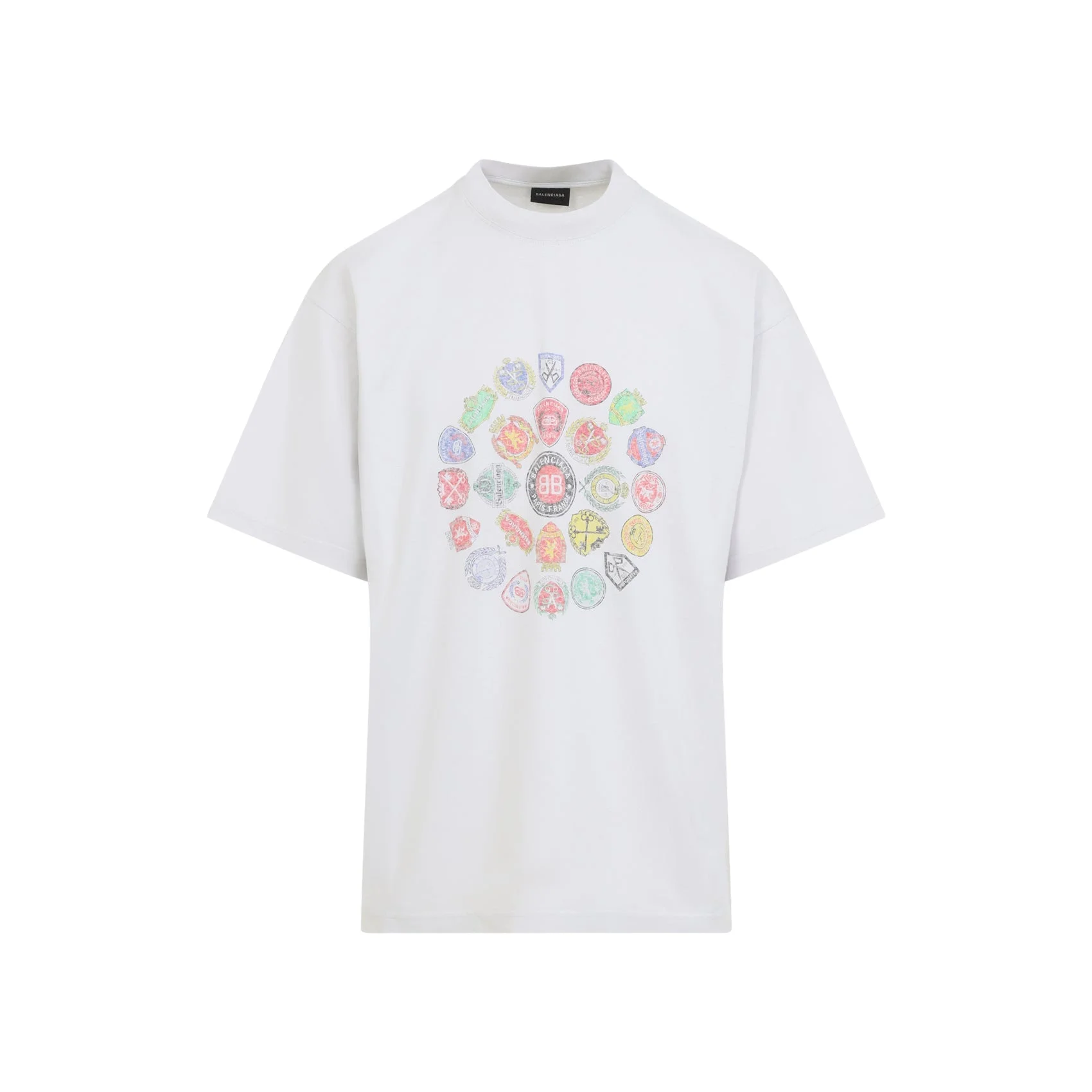 Balenciaga Dirty White Cotton Medium Fit Short Sleeves T-Shirt. Pure dirty white cotton t-shirt, round neck, front multicolor design, back lettering logo, short sleeves, straight hem, tonal stitching. Cotton | 100%COTTON Size Type: INT SKU: 764235TTVH4 Our Products Are 100% Genuine. In All Cases We Stand By The Authenticity Of Every Product Sold On Our Site. All sales are final and we only accept returns for quality issue. Buyer is responsible for any import tax/duty if applicable.