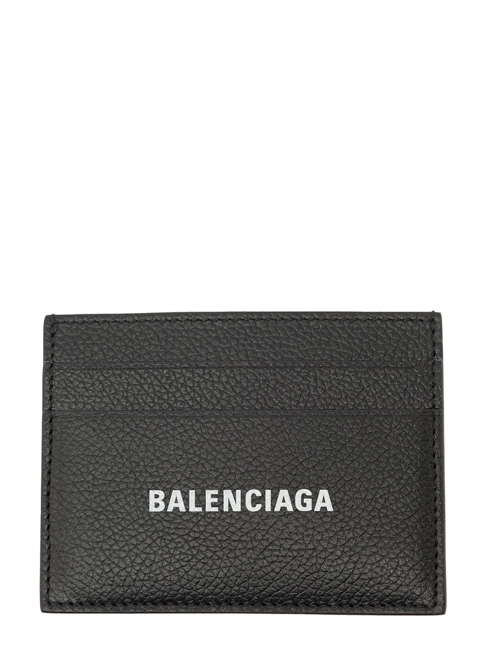 Balenciaga Men Black Card Holder With Logo Lettering On The Front In Grained Leather Man