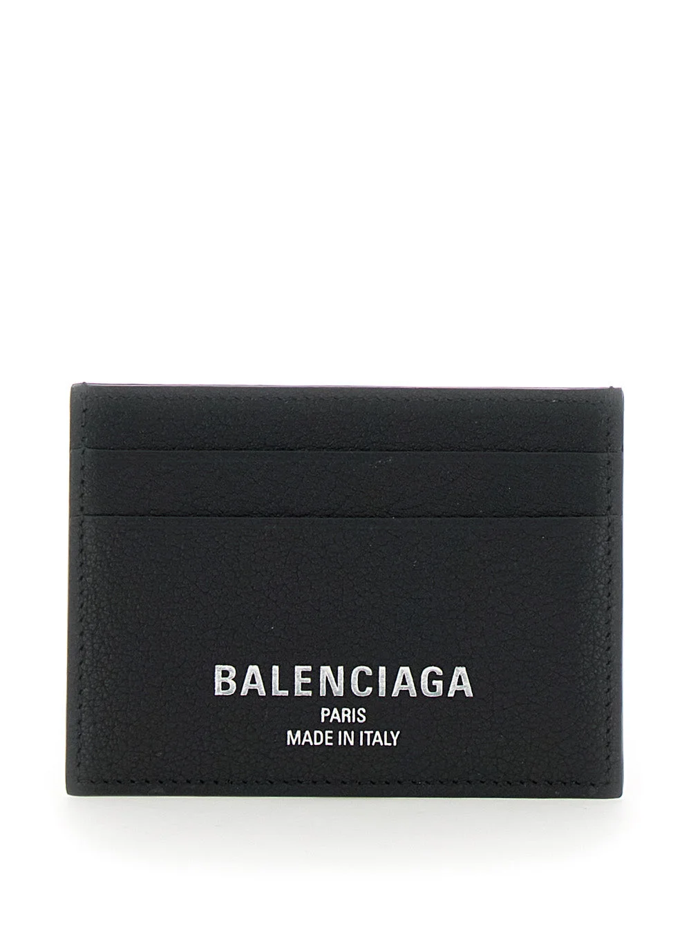 Balenciaga Men Black Card Holder With Logo Lettering On The Front In Grained Leather Man