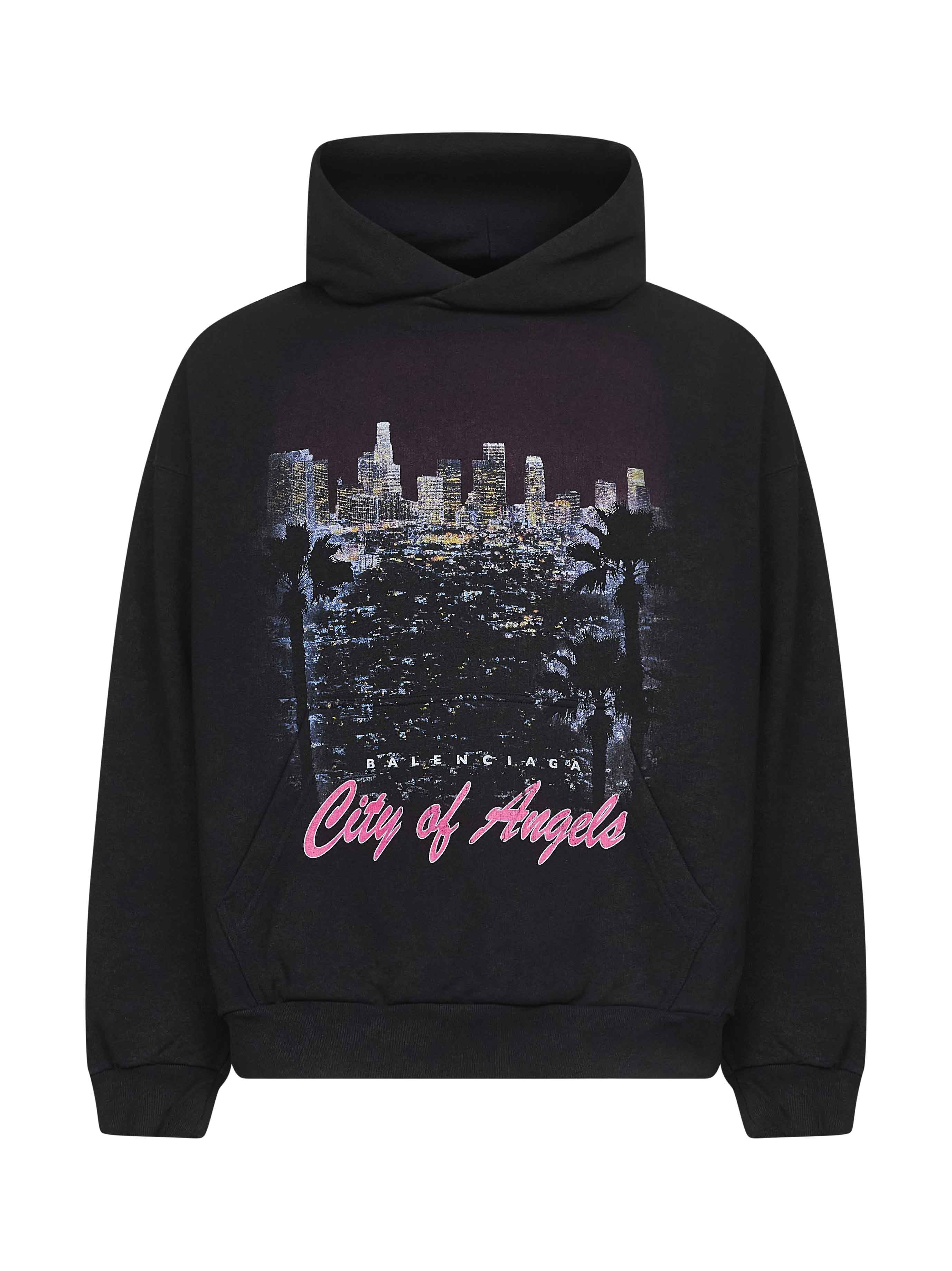 Balenciaga Men Black City Of Angels Medium Fit Hoodie