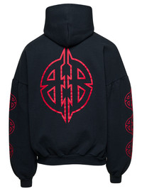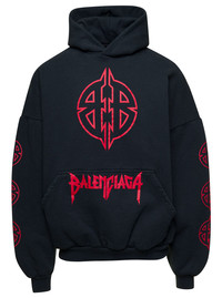 Balenciaga Men Black Hoodie With Maxi Logo Print On Front And Rear In Cotton Stretch Man
