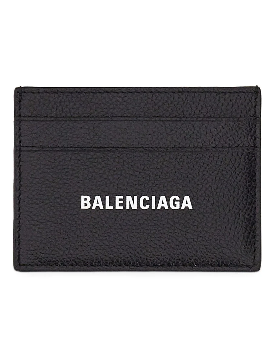 Balenciaga Logo-Print Grained Leather Card Holder Accessories