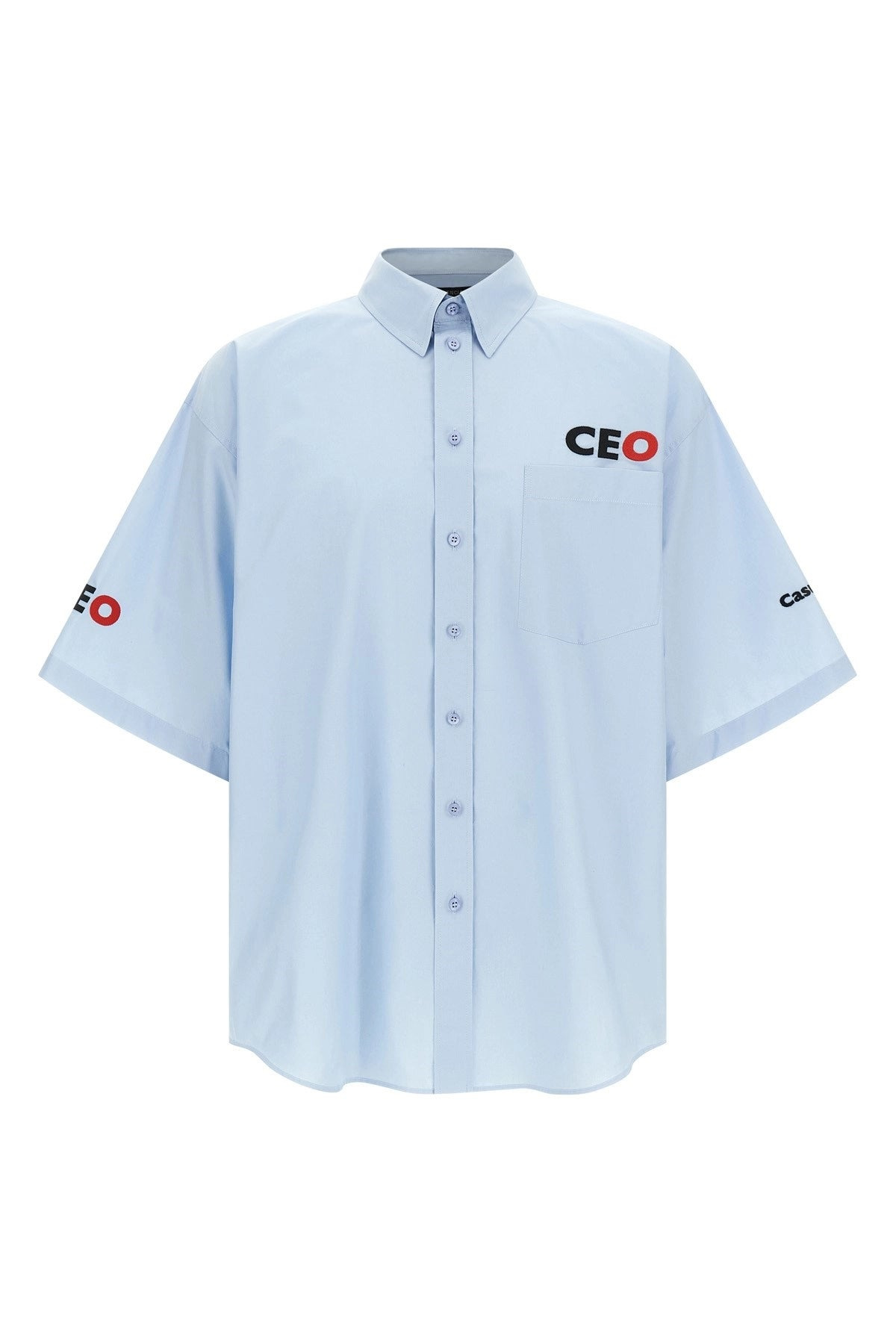 Cotton poplin shirt, CEO Uniform Logo embroidery on breast pocket and sleeves, front button closure, wide short sleeves with dropped shoulders. Color: Light Blue Size & Fit: oversized fit Composition: 100% cotton Made in: Italy SKU: 839187TNM604200 Our Products Are 100% Genuine. In All Cases We Stand By The Authenticity Of Every Product Sold On Our Site. All sales are final and we only accept returns for quality issue. Buyer is responsible for any import tax/duty if applicable.