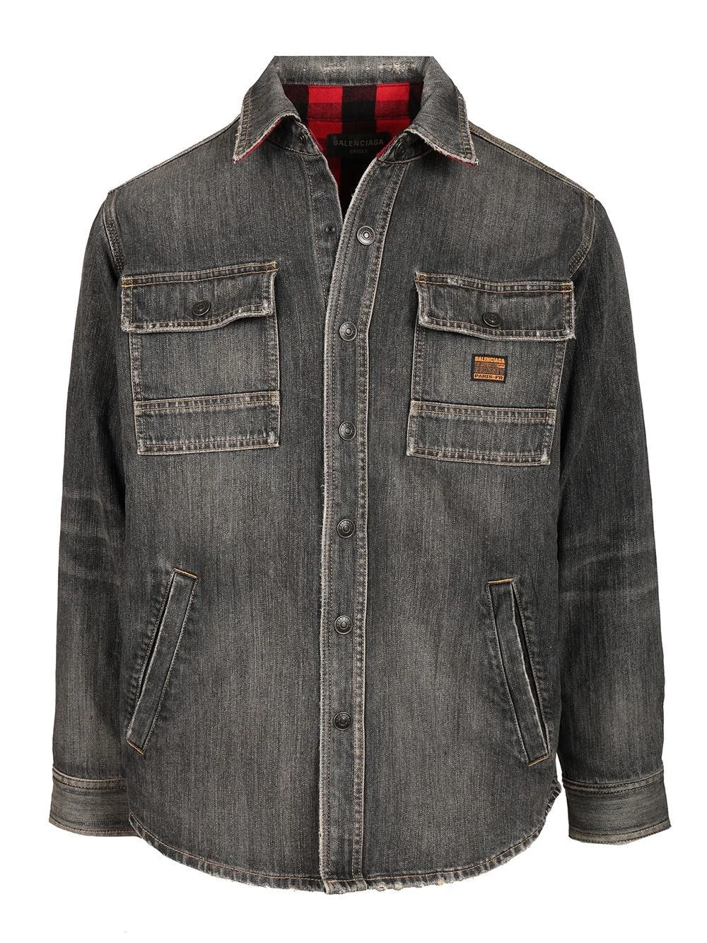 Grey cotton denim overshirt with red and black check lining, snap button closure, patch pockets with buttons, welt pockets, sewn-on Balenciaga label COTTON 100% Made in: JP SKU: 831645TSW671441 Our Products Are 100% Genuine. In All Cases We Stand By The Authenticity Of Every Product Sold On Our Site. All sales are final and we only accept returns for quality issue. Buyer is responsible for any import tax/duty if applicable.