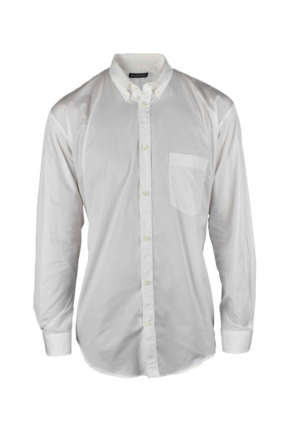 Balenciaga oversized shirt in white cotton. Turquoise blue BALENCIAGA logo on back of shirt. Long sleeves. Chest pocket. Classic collar. White button closure. 100% cotton. Size Type: INT SKU: 556878TEM16 Our Products Are 100% Genuine. In All Cases We Stand By The Authenticity Of Every Product Sold On Our Site. All sales are final and we only accept returns for quality issue. Buyer is responsible for any import tax/duty if applicable.