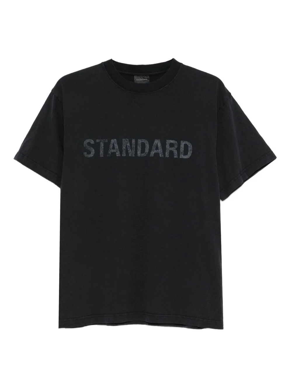 DESCRIPTION ::BALENCIAGA Standard Regular Fit T-shirt in faded black dry jersey, featuring a crew neck, short sleeves and a standard motif printed on the chest.MADE IN::PortugalCOLOR::BLACK SKU: 850261TTVC71041BLACK Our Products Are 100% Genuine. In All Cases We Stand By The Authenticity Of Every Product Sold On Our Site. All sales are final and we only accept returns for quality issue. Buyer is responsible for any import tax/duty if applicable.