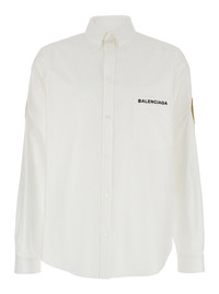 Balenciaga Men White Shirt With Logo Lettering On The Front And Logo Patch On The Sleeve In Cotton M