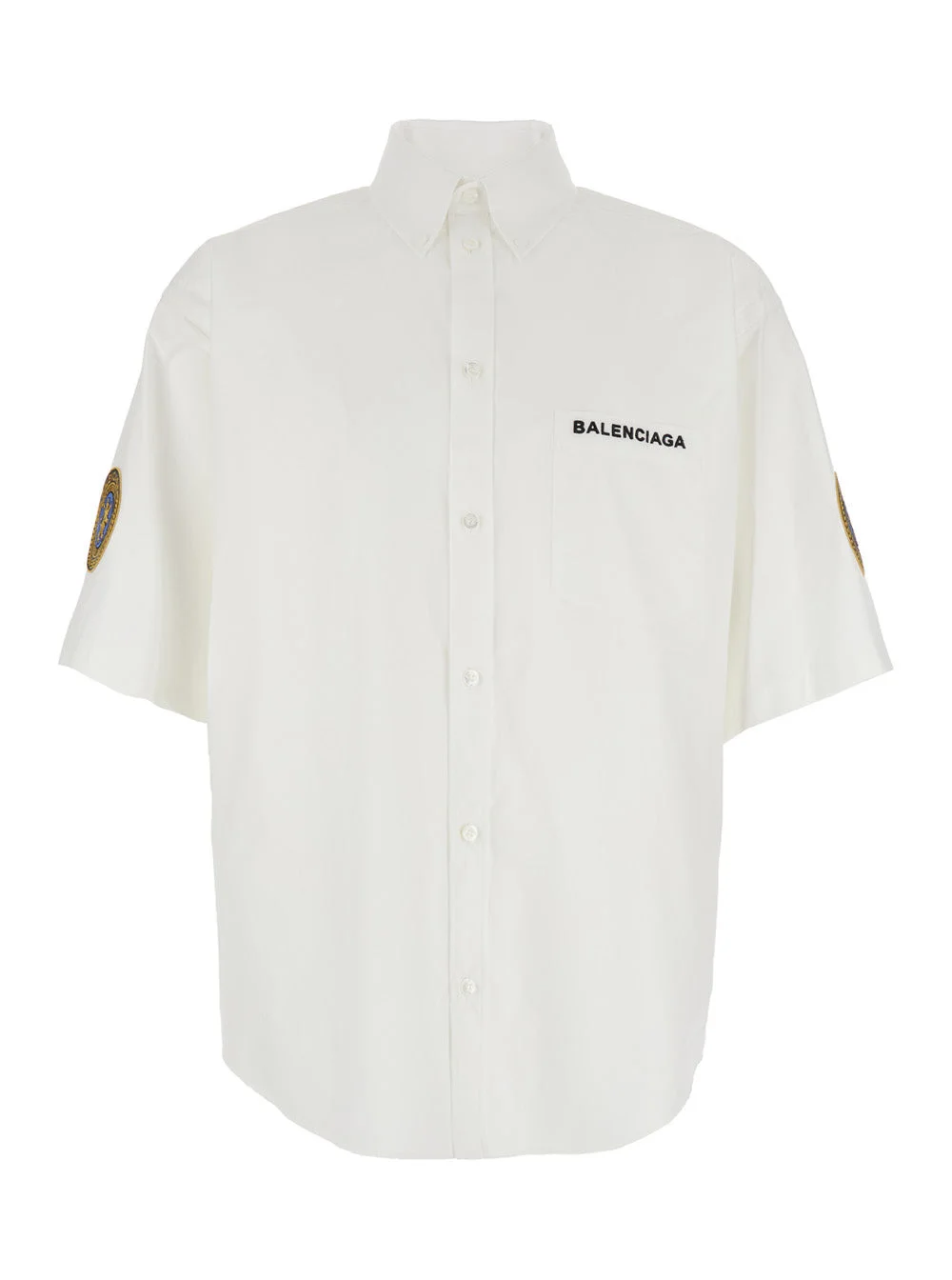 Balenciaga Men White Shirt With Logo Lettering On The Front And Logo Patch On The Sleeve In Cotton M