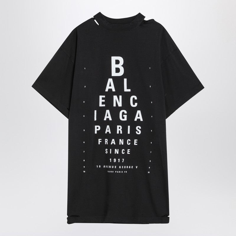 Black faded cotton T-shirt by Balenciaga, featuring short sleeves, distressed and ripped details, contrasting printed Optical pattern on the front, ribbed crew neck, and an oversized fit. Model wears size 1 Model measurements: Height: 180 cm Chest: 85 cm Waist: 60 cm Hips: 93 cm Size Type: INT Material: Cotton SKU: 811688TRVU6/QBALEN9034109 Our Products Are 100% Genuine. In All Cases We Stand By The Authenticity Of Every Product Sold On Our Site. All sales are final and we only accept returns for quality issue. Buyer is responsible for any import tax/duty if applicable.
