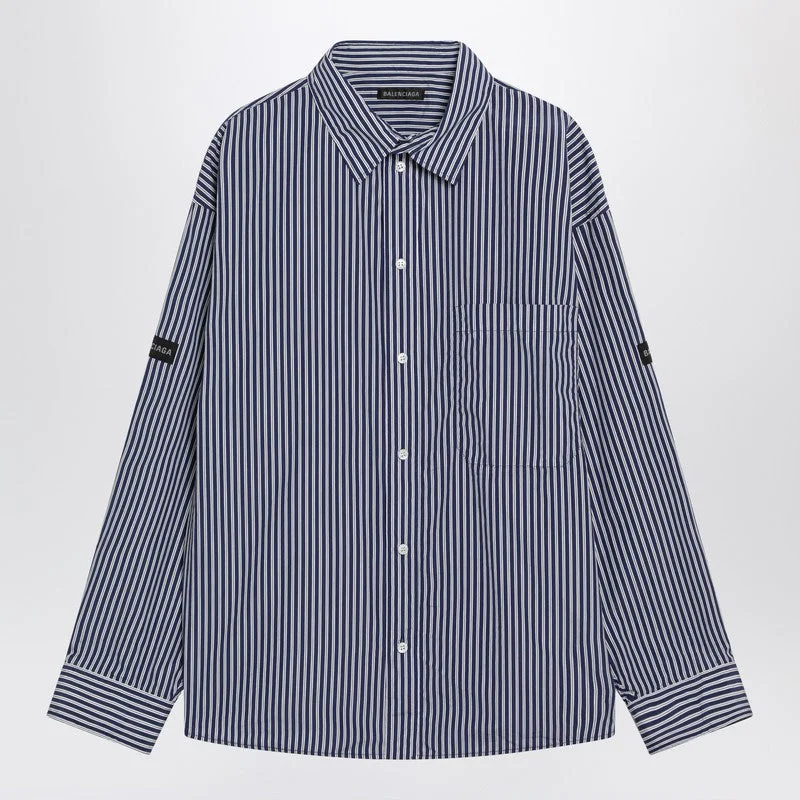 Balenciaga Oversize Navy Blue And White Striped Shirt Men