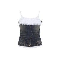Balenciaga Patched Blue Cotton Top. Crafted from blue cotton denim, top white lace insert with fine straps. 5-pocket jeans trompe l`oeil, rhinestone embellishments and branded label on the back. Cotton | 99%COTTON 1%ELASTANE Size Type: FR SKU: 838716TSWC4Blue Our Products Are 100% Genuine. In All Cases We Stand By The Authenticity Of Every Product Sold On Our Site. All sales are final and we only accept returns for quality issue. Buyer is responsible for any import tax/duty if applicable.