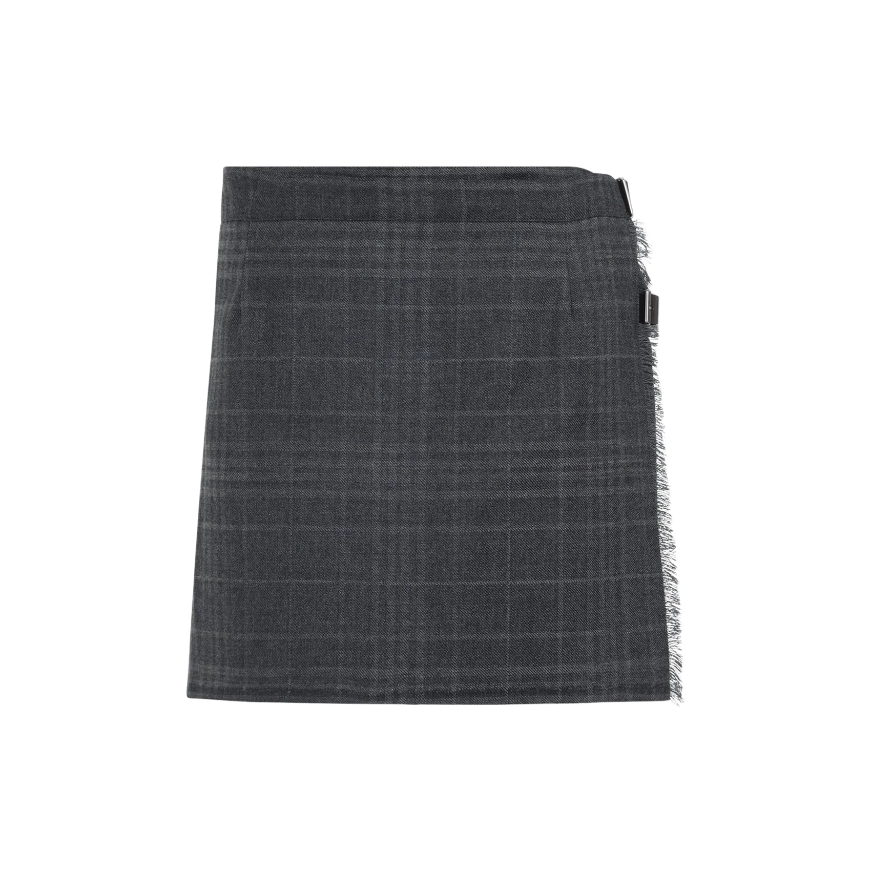 Balenciaga Pleated Grey Wool Mini Skirt. Crafted from grey checkered wool, wrap construction, partially pleated, two belts with buckle fastening on the side, fringed hem, mini length. Wool | 100%WOOL Size Type: FR SKU: 850673TQT01Grey Our Products Are 100% Genuine. In All Cases We Stand By The Authenticity Of Every Product Sold On Our Site. All sales are final and we only accept returns for quality issue. Buyer is responsible for any import tax/duty if applicable.