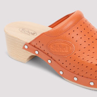 Balenciaga Pastel Orange Calf Leather Scholl Clog Mule. Pure pastel orange calf leather mule, round toe, perforated details on the upper, side engraved logo, slip-on style, tonal beige wood sole, wide heel. Leather | 100%CALF LEATHER 100%WOOD Size Type: IT SKU: 827403WB260Nude&Neutrals Our Products Are 100% Genuine. In All Cases We Stand By The Authenticity Of Every Product Sold On Our Site. All sales are final and we only accept returns for quality issue. Buyer is responsible for any import tax/duty if applicable.