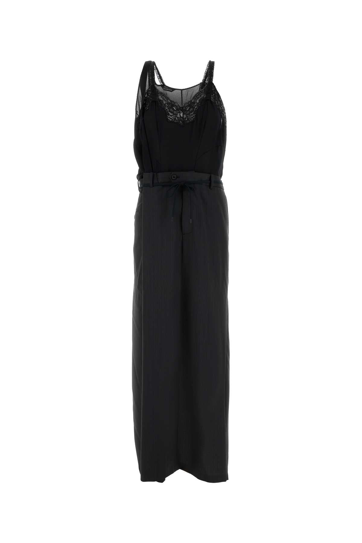 Balenciaga Women Black Georgette And Jersey Patched Slip Dress
