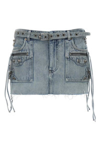 'Cagole Mini' skirt in Japanese cotton denim with stud and buckle applique, mid-rise model with matching belt, zip and button closure, pockets, frayed hem. Color: Light Blue Size & Fit: true to size fit French size Composition: 100% cotton Made in: Japan SKU: 764534TDW144016 Our Products Are 100% Genuine. In All Cases We Stand By The Authenticity Of Every Product Sold On Our Site. All sales are final and we only accept returns for quality issue. Buyer is responsible for any import tax/duty if applicable.