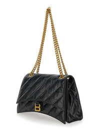 Balenciaga Women 'Crush M' Black Crossbody Bag With B Logo In Crush Quilted Leather Woman
