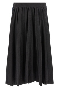 Hybrid Pleated Wool-Ramie Midi Skirt black
