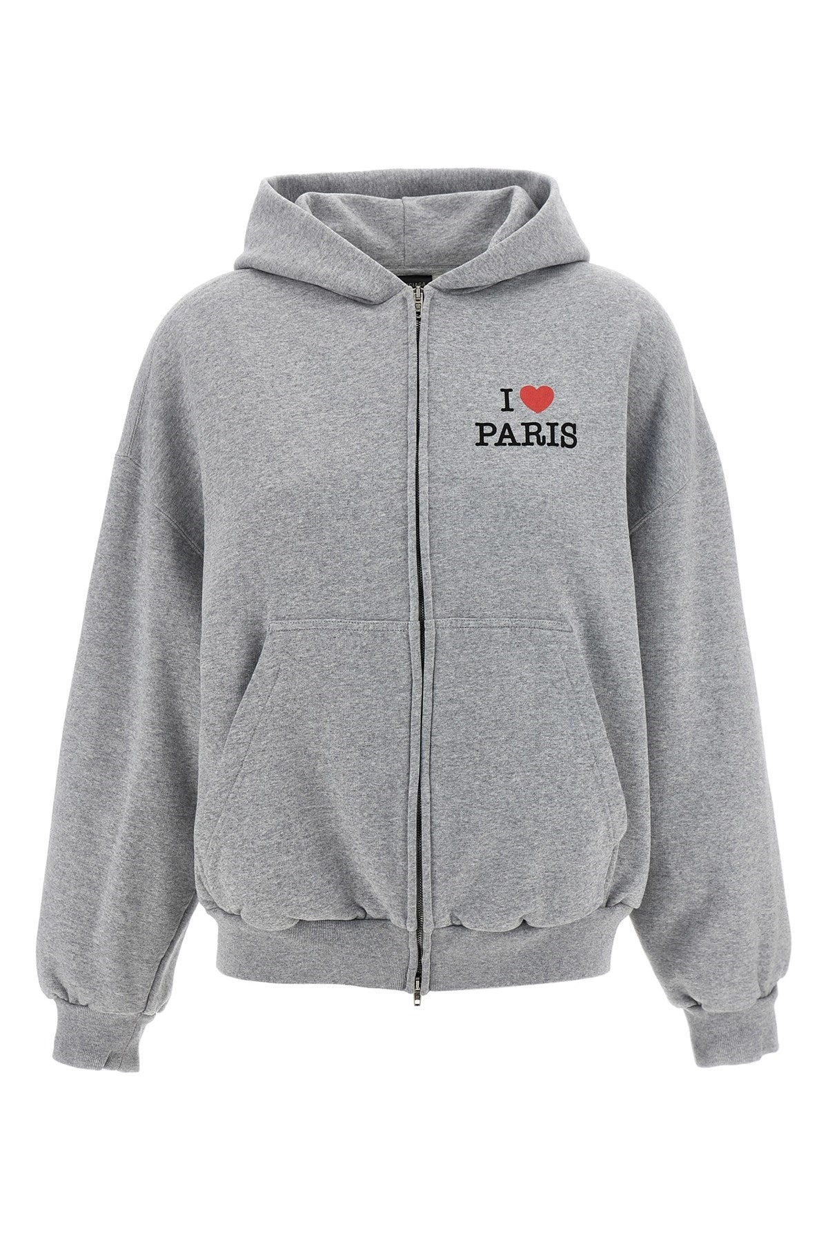 Curly fleece hoodie with 'I Love Paris & Balenciaga' print on the front and back, front zip closure, pockets, long sleeves with cuffs and dropped shoulders. Color: Gray Size & Fit: oversized fit Composition: 100% cotton Made in: Portugal SKU: 803264TSVI51300 Our Products Are 100% Genuine. In All Cases We Stand By The Authenticity Of Every Product Sold On Our Site. All sales are final and we only accept returns for quality issue. Buyer is responsible for any import tax/duty if applicable.