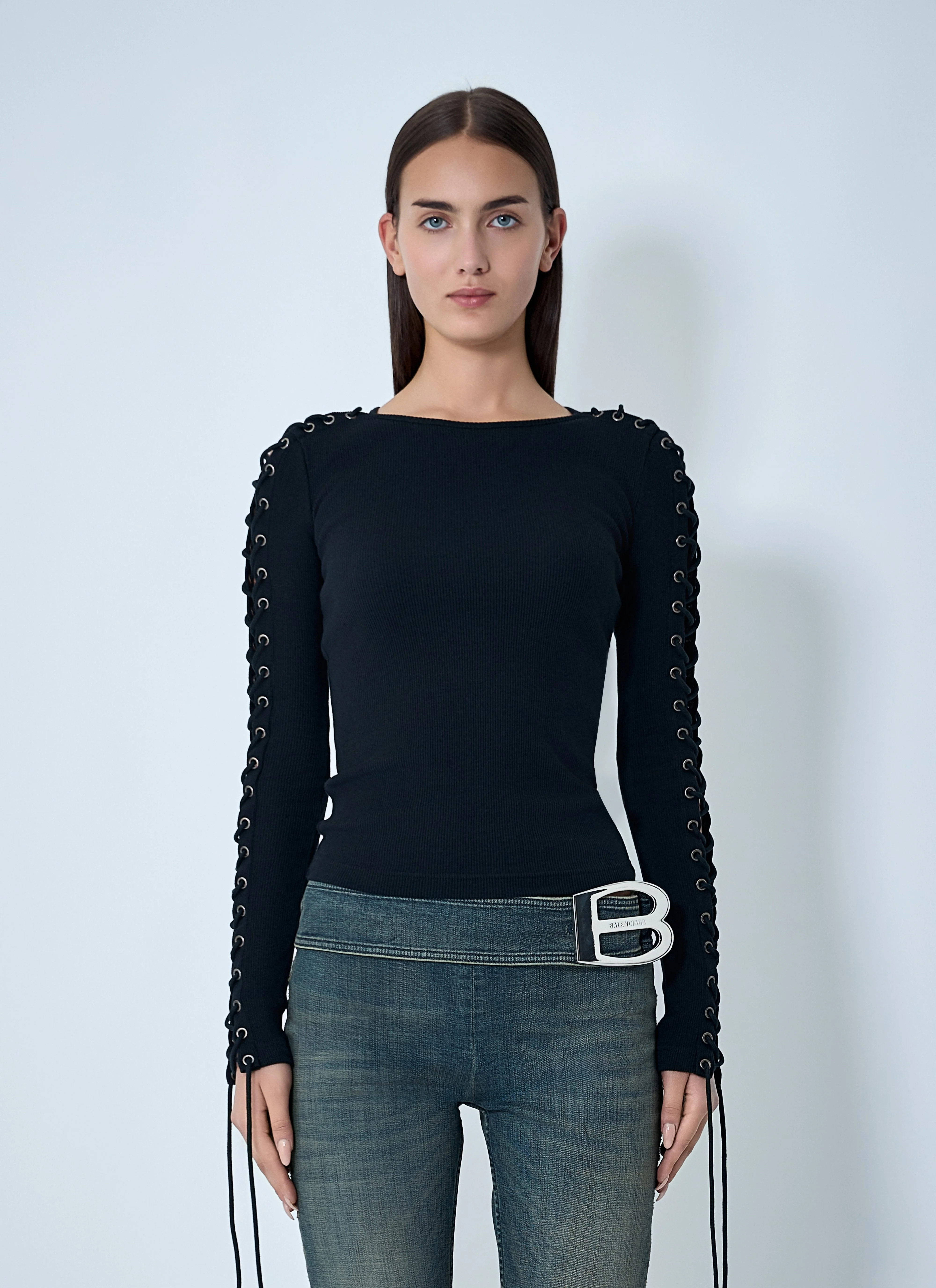Balenciaga Women Lace-Up T-Shirt