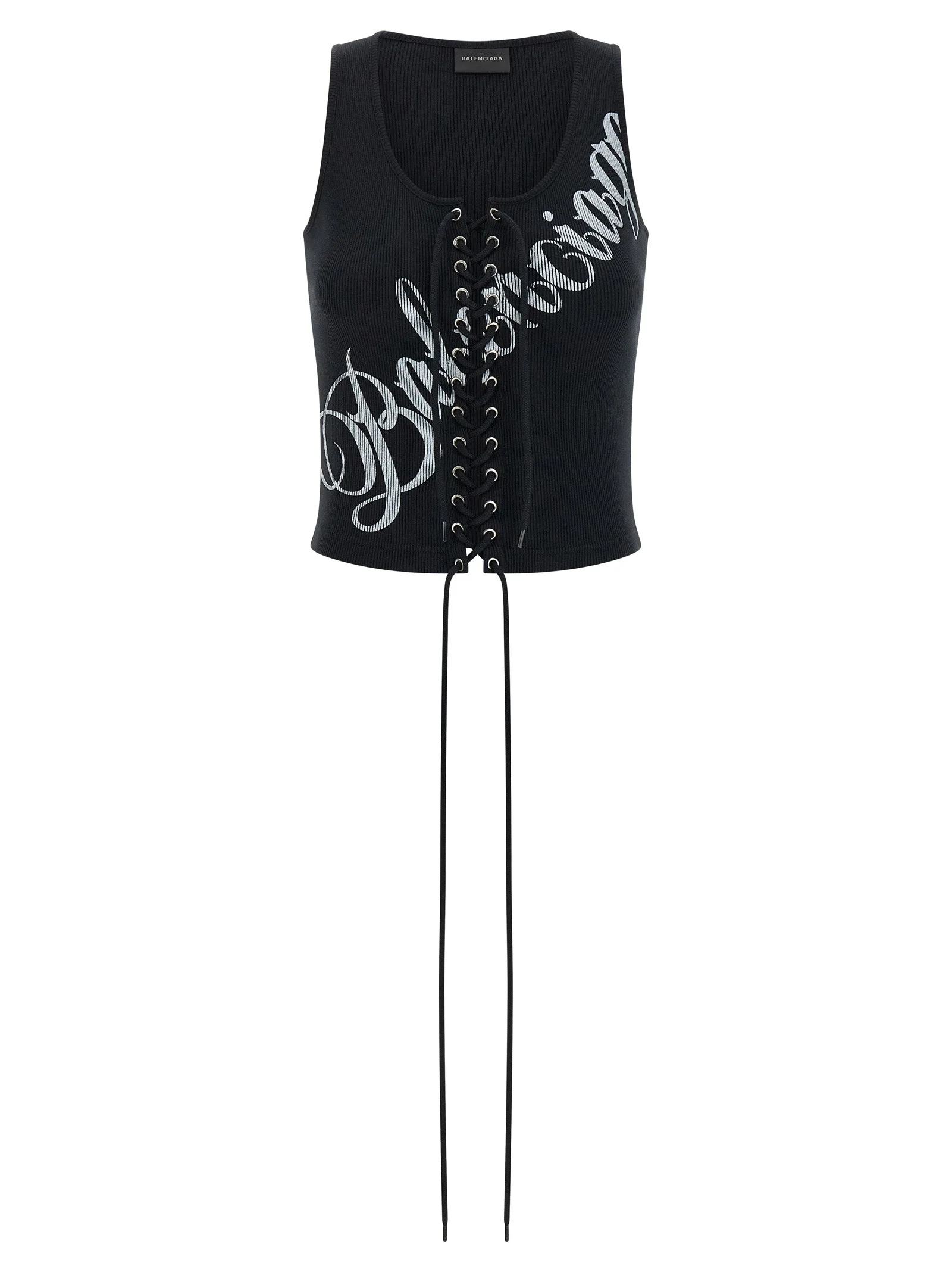 Ribbed stretch cotton top with logo print and 'Lace-Up' detail with front closure and wide round neckline. true to size fit 100% cotton SKU: 858152TTVO21070 Our Products Are 100% Genuine. In All Cases We Stand By The Authenticity Of Every Product Sold On Our Site. All sales are final and we only accept returns for quality issue. Buyer is responsible for any import tax/duty if applicable.