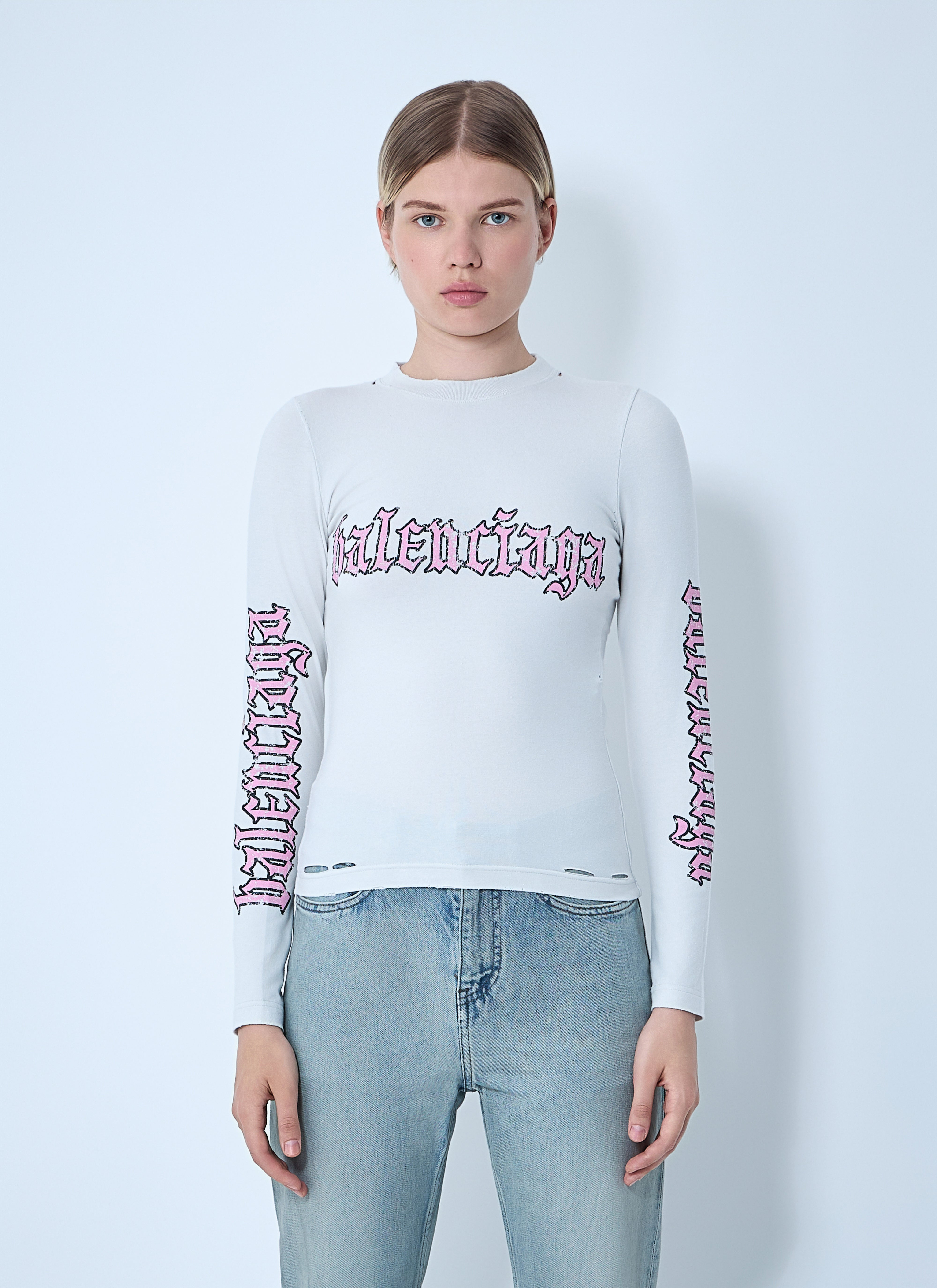 Women's Blackletter Script Fitted Long Sleeve T-shirt in Dirty White