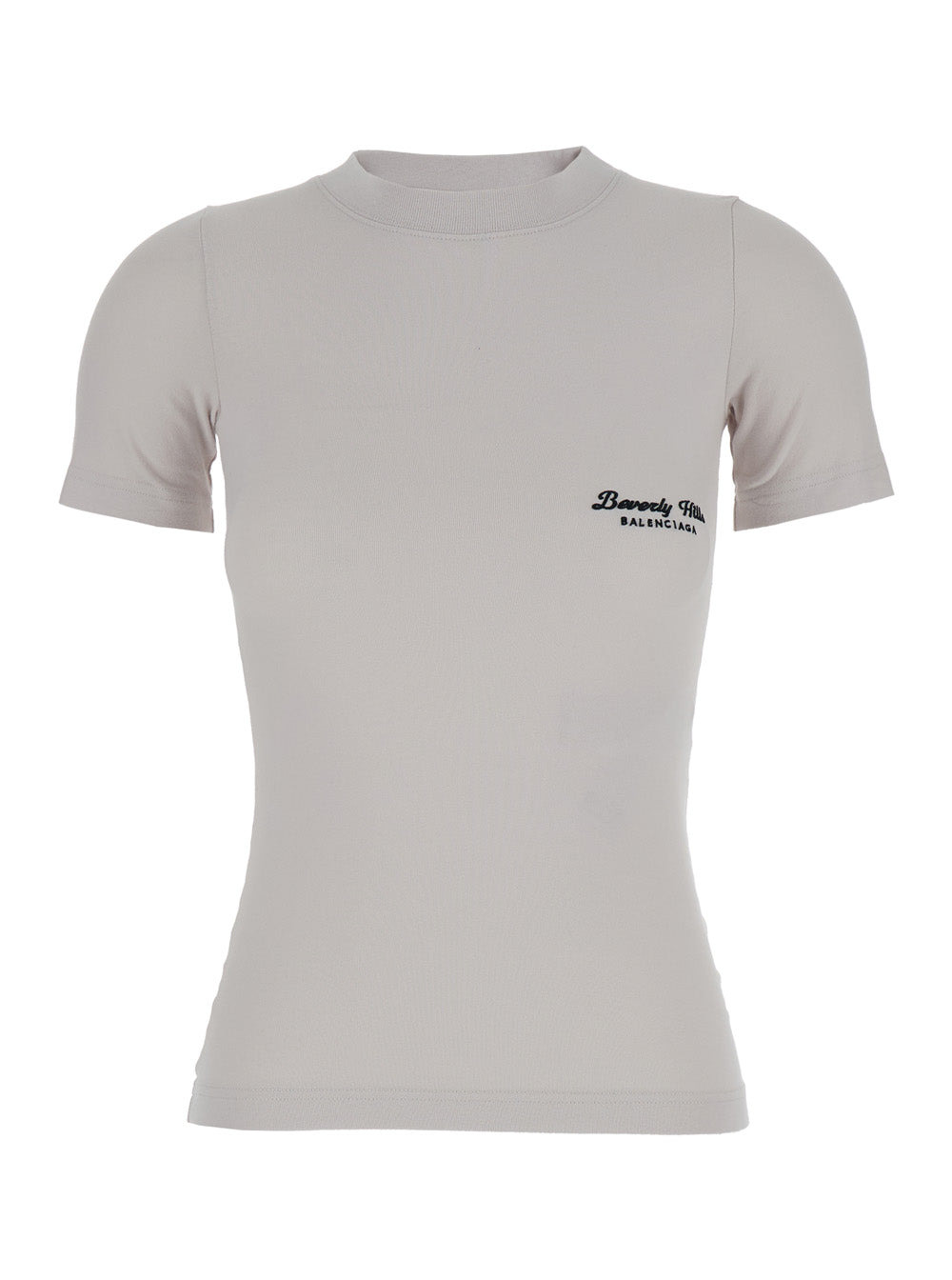 Balenciaga Women Off White T-Shirt With Beverly Hills Embroidery In Peeling Stretch Jersey Woman