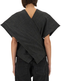 Draped checked wool-twill top