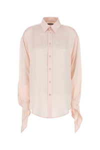 Knotted-Cuff Logo-Jacquard Silk Shirt white