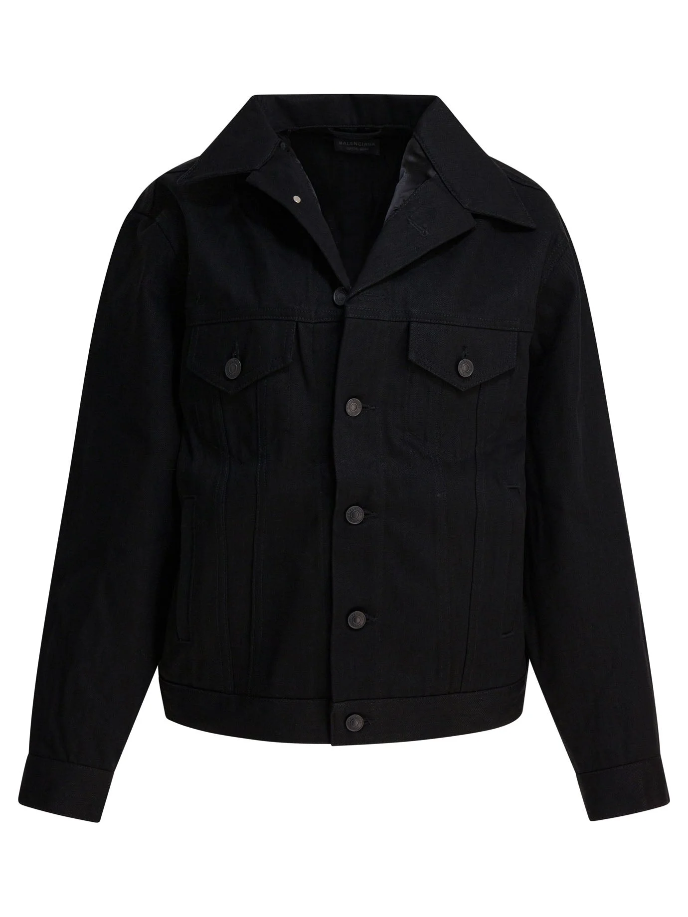 Balenciaga "Standing" jacket, straight construction with lined construction and ergonomic silhouette. The jacket is made of denim with four front patch pockets and central closure via exposed metal buttons. Adjustable side straps allow modulation of the fit. The inner lining is made of 100 percent viscose, ensuring a smooth surface in contact with the body. || - Solid color - Long sleeves - Four pockets on the front - Metal button closure - Adjustable side straps - Lined, lining: 100% viscose - Regular fit 100% cotton SKU: 849898TTWA41000 Our Products Are 100% Genuine. In All Cases We Stand By The Authenticity Of Every Product Sold On Our Site. All sales are final and we only accept returns for quality issue. Buyer is responsible for any import tax/duty if applicable.