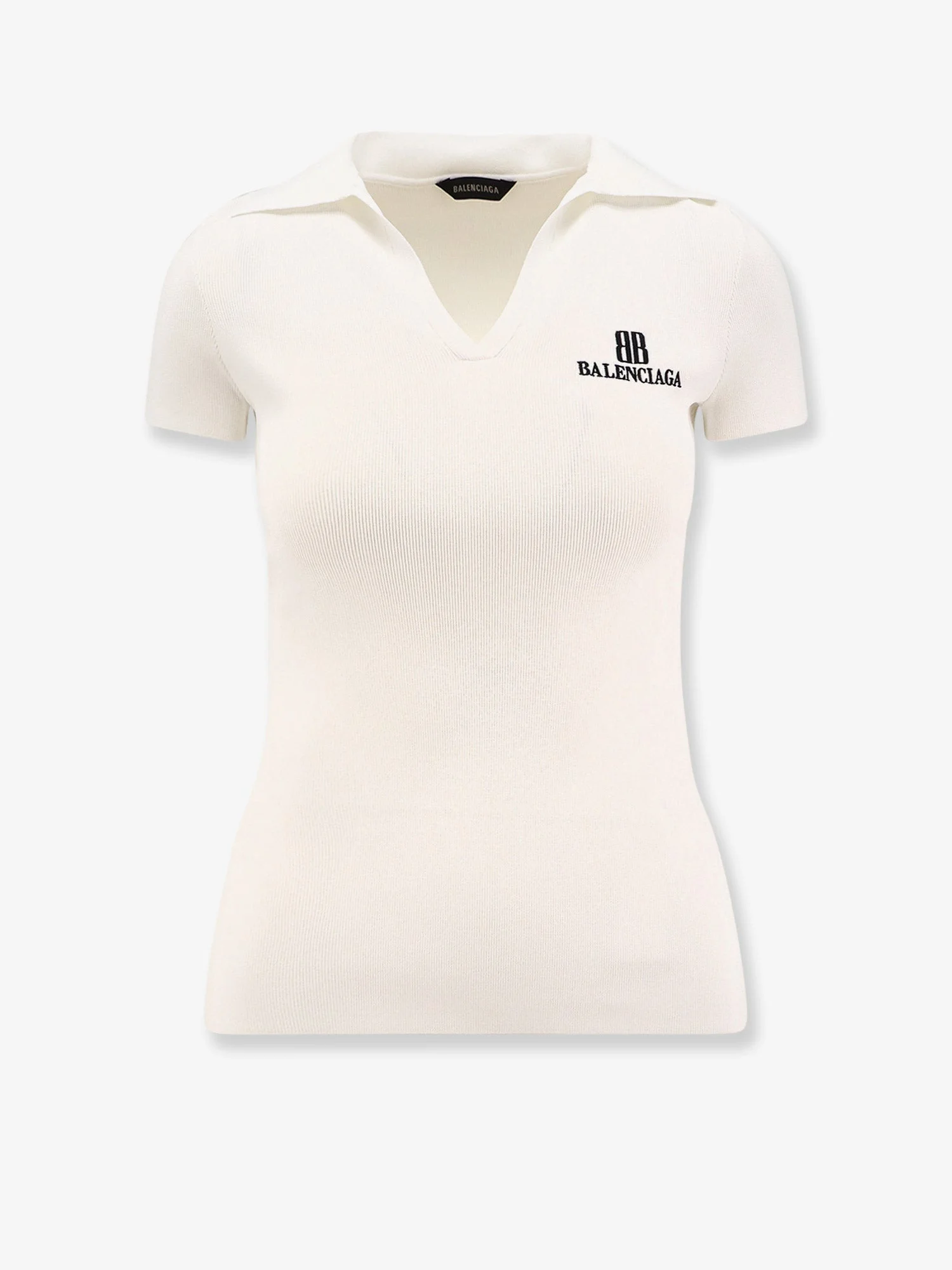 Brand: BALENCIAGA Product reference:835501 Color reference:T52319040 Color:White Season:25A Gender:Woman Category 1:Abbigliamento Category 2:Knitwear Made in:ITALIA Pointed collar Short sleeves Stretch Made in Italy 84% Viscose, 16% Polyester SKU: 835501T52319040 Size Type: INT SKU: 835501T52319040 Our Products Are 100% Genuine. In All Cases We Stand By The Authenticity Of Every Product Sold On Our Site. All sales are final and we only accept returns for quality issue. Buyer is responsible for any import tax/duty if applicable.