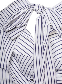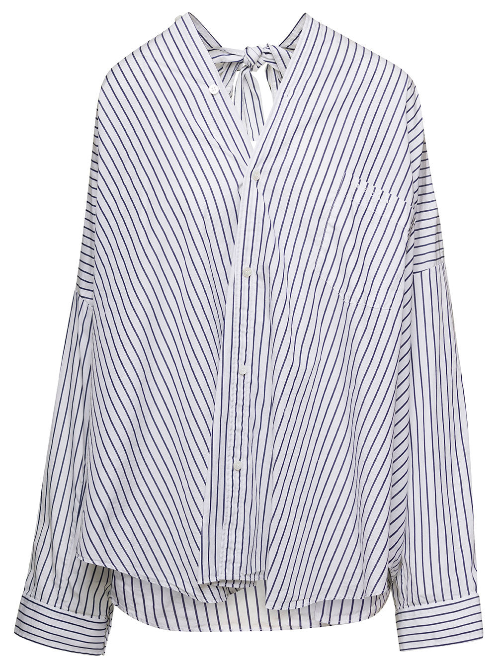 Shirt V neckline Long sleeves with cuffs Striped motif Front button fastening Patch pocket on the chest Logo embroidery on the front Bow detail on the back Rounded hem longer on the back White and blue Cotton Oversize fit SKU: 715032TFM029167 Our Products Are 100% Genuine. In All Cases We Stand By The Authenticity Of Every Product Sold On Our Site. All sales are final and we only accept returns for quality issue. Buyer is responsible for any import tax/duty if applicable.