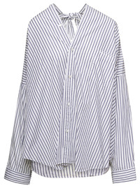 Balenciaga Women White And Blue Striped Shirt With Bow Detail In Cotton Woman